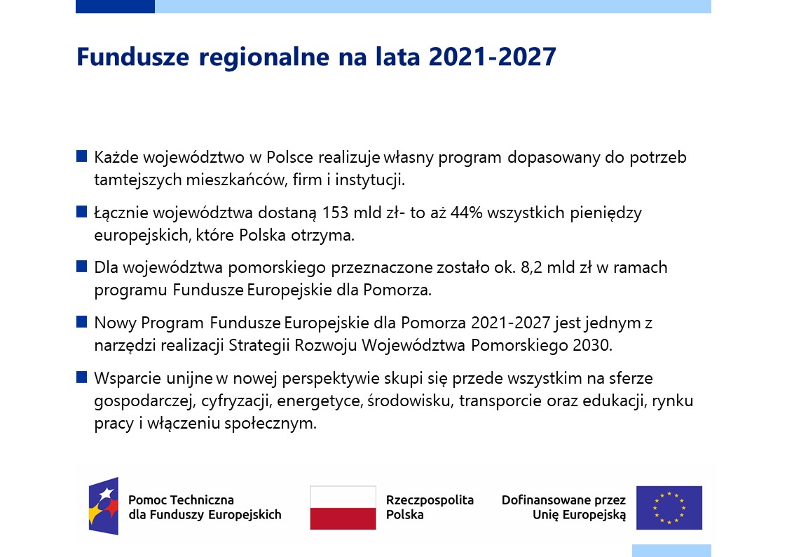 Charakterystyka programów krajowych (Fundusze Europejskie na Infrastrukturę, Klimat i Środowisko, Fundusze Europejskie dla Nowoczesnej Gospodarki, Fundusze Europejskie dla Rozwoju Społecznego, Fundusze Europejskie na Rozwój Cyfrowy) programu Regionalnego - Fundusze Europejskie dla Pomorza na lata 2021-2027