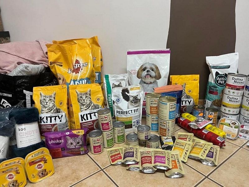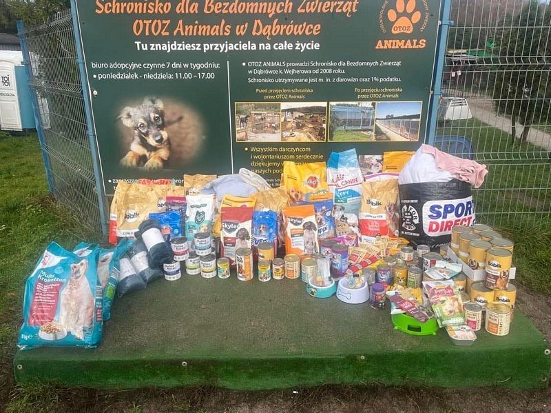 Pomocni z Żeroma zawieźli dziś do schroniska w Dabrówce zapas żywności i przysmaków, które udało się zebrać i kupić po miesięcznej akcji.