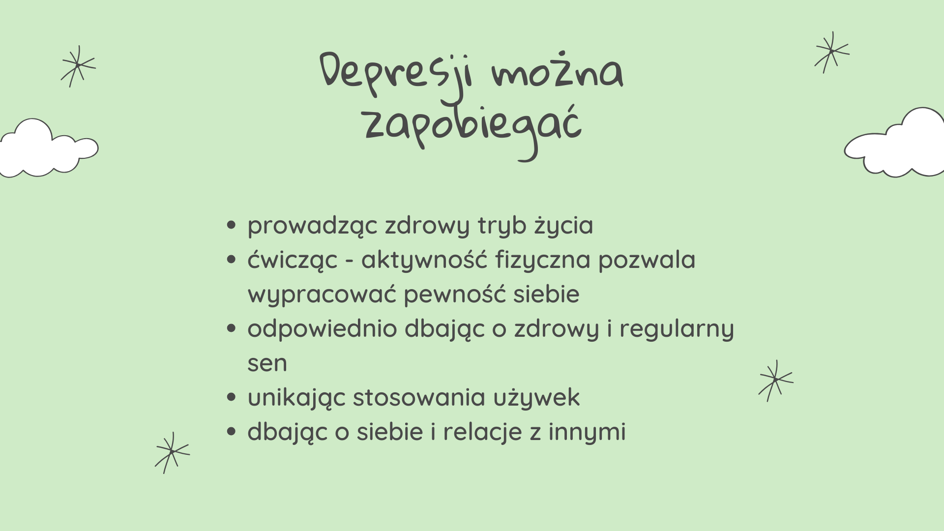 u lekarza rodzinnego, pielęgniarki środowiskowej lub do innego pracownika opieki zdrowotnej. Depresję można wyleczyć za pomocą psychoterapii i/lub leków przeciwdepresyjnych.