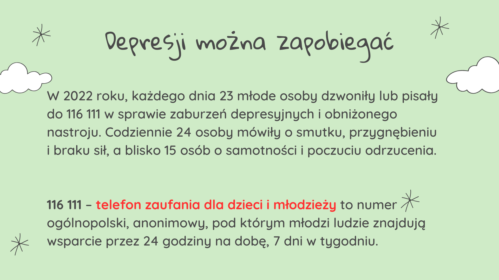Prawdopodobnie każdy z nas ma w swoim otoczeniu osobę, która zmaga się z depresją. Warto pamiętać, że to nie chwilowy spadek nastroju, ale długotrwały smutek, brak zainteresowania rzeczami, które dotychczas sprawiały przyjemność, utrzymujący się niepokój.