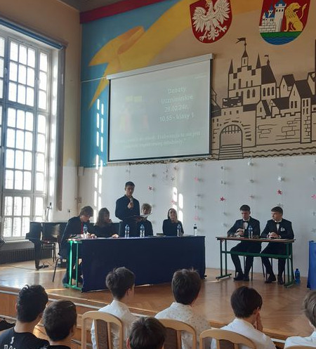 Uczestnikami debat byli uczniowie klas I, II i III. Spośród chętnych uczniów wyłoniono Marszałka, Sekretarza, Zespół Propozycji, Zespół Opozycji. Pozostali uczniowie pełnili rolę publiczności, która jednocześnie na koniec głosowała na jedną ze stron i tym samym ustalała wynik debaty.