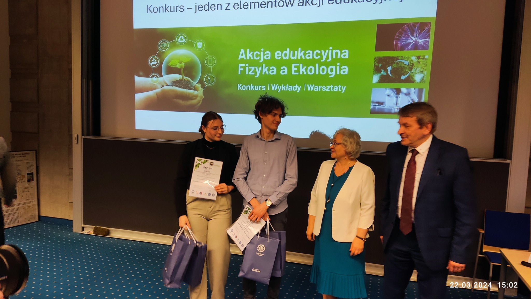 Z przyjemnością informujemy, że uczniowie naszej szkoły w składzie Amelia Wiśniewska z klasy 3B i Jakub Szczechowicz z klasy 3 A zajęli II miejsce w Ogólnopolskim konkursie "Fizyka a Ekologia". Młodzi naukowcy zaprezentowali efekty swojej pracy badawczej nt. "Zanieczyszczenia środowiska – jak monitorować ?” i odpowiadali na pytania jury podczas uroczystego finału, który odbył się 22 marca 2024 roku w Centrum Nowych Technologii Politechniki Śląskiej w Gliwicach.