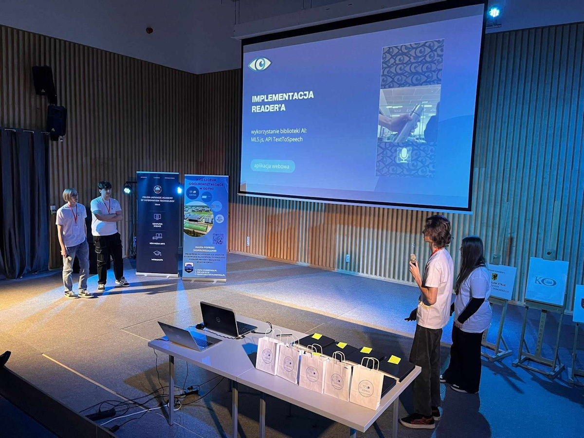Na stworzenie pomysłu i realizację projektu uczestnicy mieli 24 godziny, następnie prezentowali owoce swojej pracy. Nasza drużyna przez cały ten czas realizowała aplikację webową oraz mobilną dla osób niewidomych, która uruchamia kamerę smartfona, a za jej pomocą rozpoznaje przedmioty i czyta ich nazwy. Musimy przyznać, że konkurencja była bardzo mocna, tym bardziej gratulujemy naszym programistom.