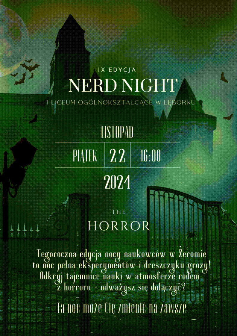Kolejna edycja Nerd Night w naszym Liceum zbliża się wielkimi krokami. Zapraszamy uczniów szkół podstawowych w nasze progi. Startujemy 22.11.2024 o godz.16.00.