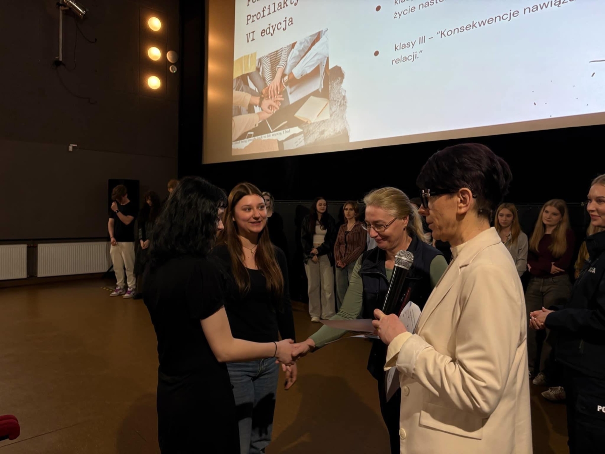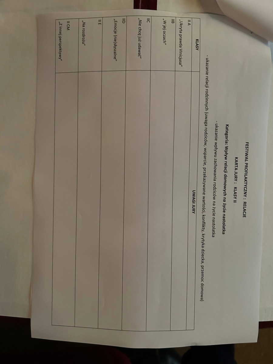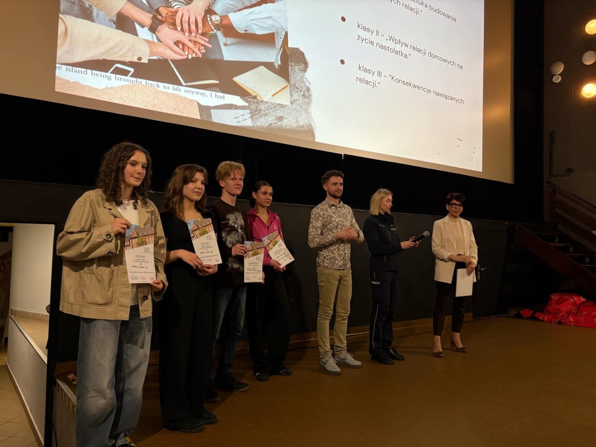 Klasy II zajęły się tematem Wpływ relacji domowych na życie nastolatków. Nagroda przypadła uczniom klasie 2D.