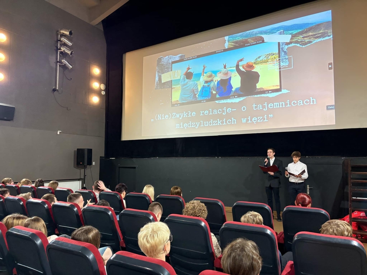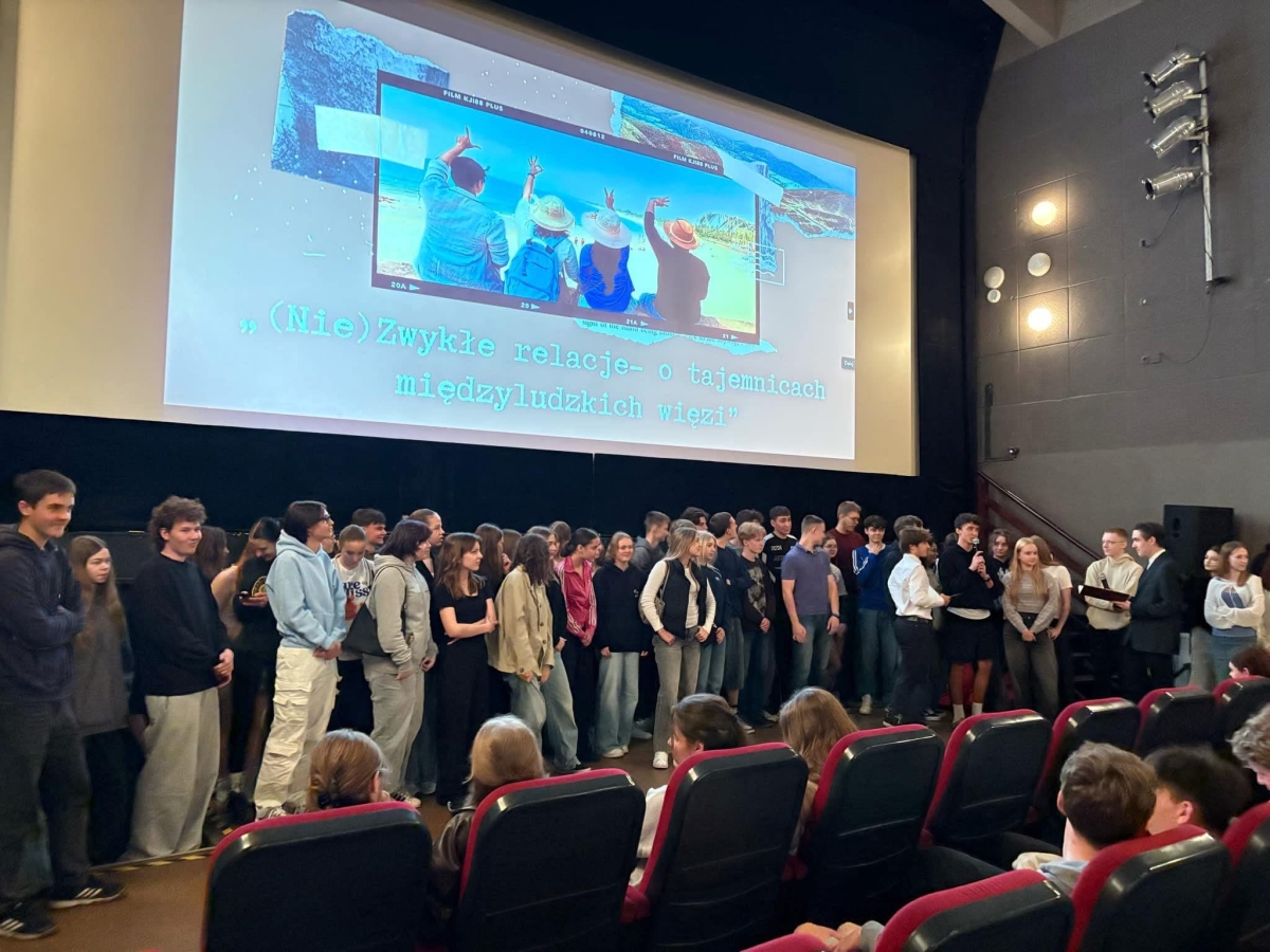 Dzięki uprzejmości i wsparciu Lęborskie Centrum Kultury „Fregata” - @lck.fregata.lebork - mieliśmy możliwość obejrzenia na dużym ekranie nagranych przez naszą młodzież filmików dotyczących tematu (Nie)Zwykłe RELACJE - o tajemnicach międzyludzkich więzi.