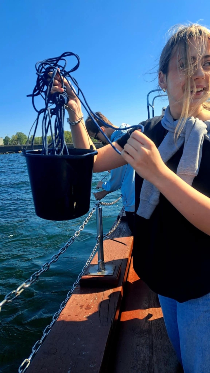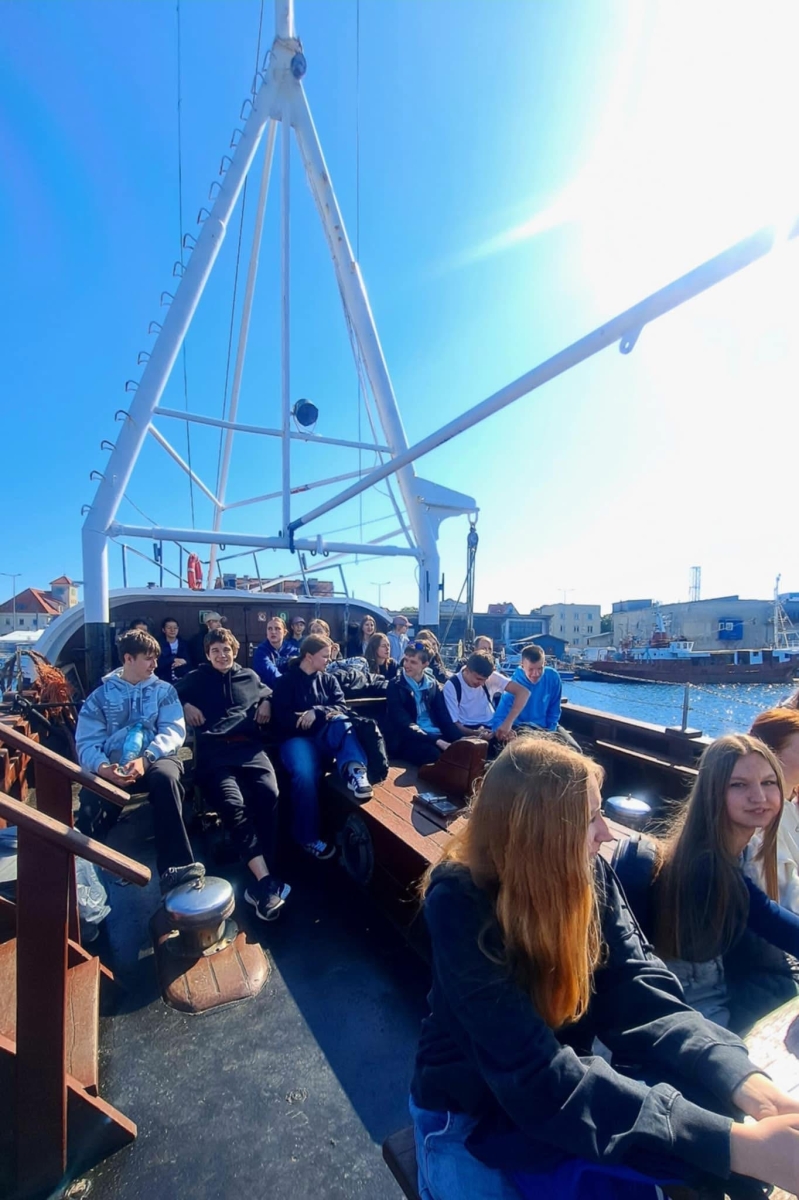 Dziś młodzież wzięła udział w terenowych warsztatach w postaci rejsu badawczego z poborem prób wody i badaniem jej podstawowych parametrów (zasolenia, temperatury, pH, przezroczystości pozornej), a także w zajęciach laboratoryjnych, gdzie dokonali sekcji ryby w celu zbadania przystosowania ryb do życia w wodzie w budowie morfologicznej i anatomicznej.