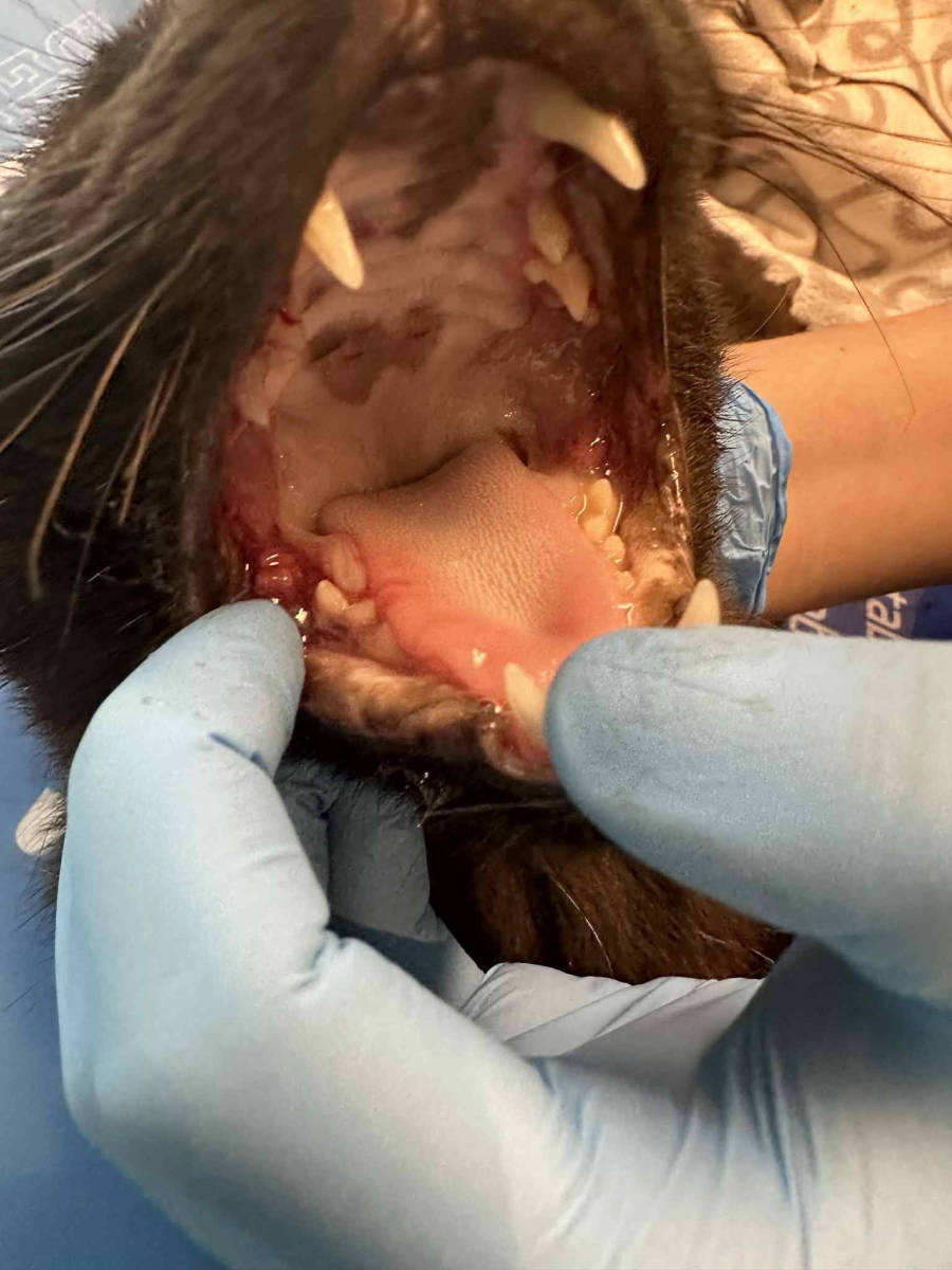 Grubcio został uśpiony za pomocą znieczulenia wziewnego. Wykonano mu zdjęcie RTG, które pozwoliło ocenić stan zębów pod linią dziąseł - liczne zmiany ropne oraz stany zapalne nie dawały innego wyboru - kot przeszedł ekstrakcję większości zębów, a na pozostałych wykonano skaling. Ze względu na ropne zmiany przez kilka dni przyjmował specjalistyczne leki.