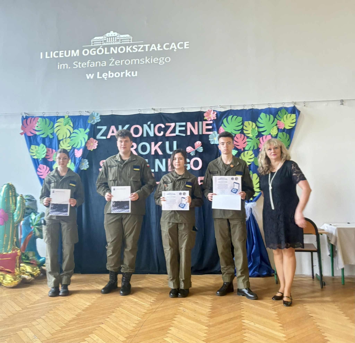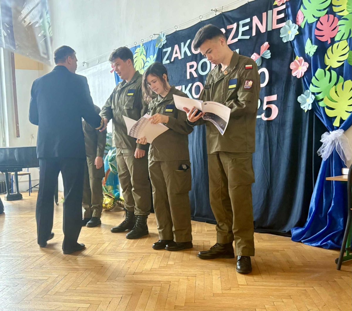 Uczniowie klas CYBER MIL otrzymali specjalne odznaczenia za wybitne wyniki i zaangażowanie 💻🎖.W uroczystości uczestniczyli zaproszeni goście: