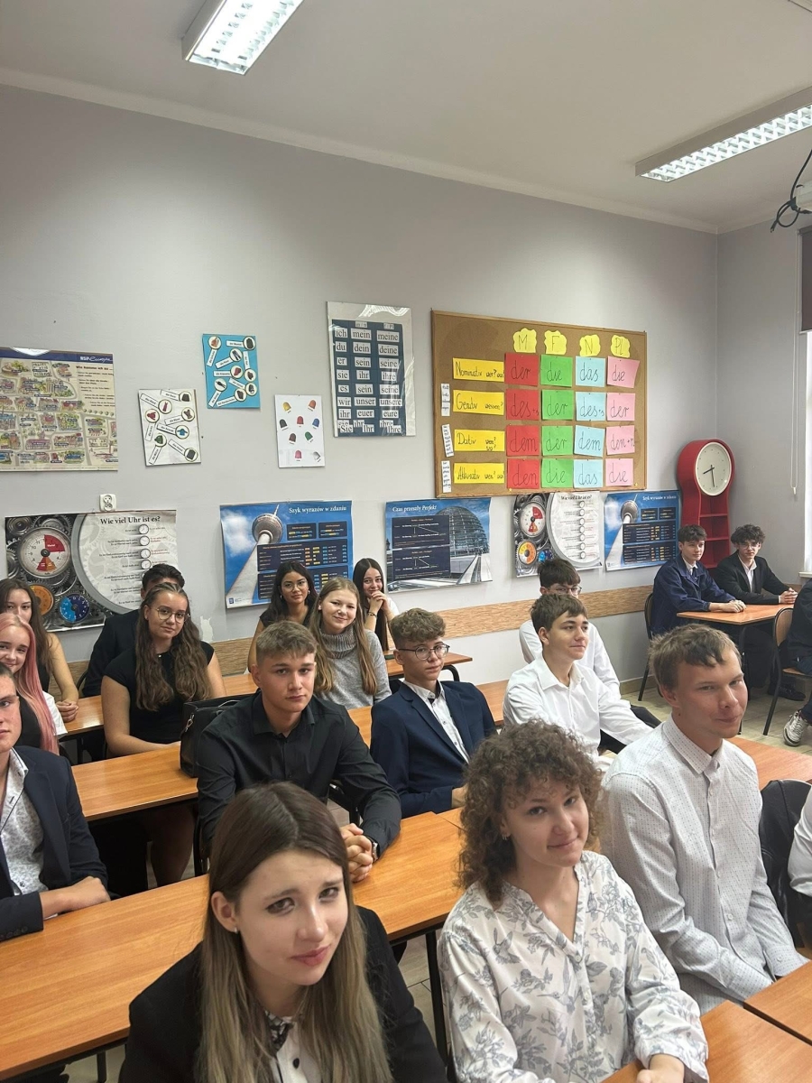Mimo innego anturażu, społeczność szkolna i tak odśpiewała hymn 🎼, zatopiła się w historię II Wojny Światowej, wysłuchała przemówienia Pani Dyrektor Katarzyny Wach, oraz dowiedziała się, co czeka ich w nowym roku. Klasy pierwsze zostały także miło powitane.
