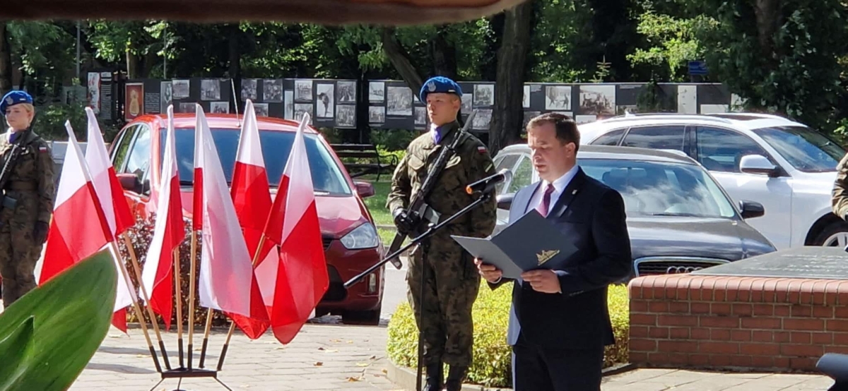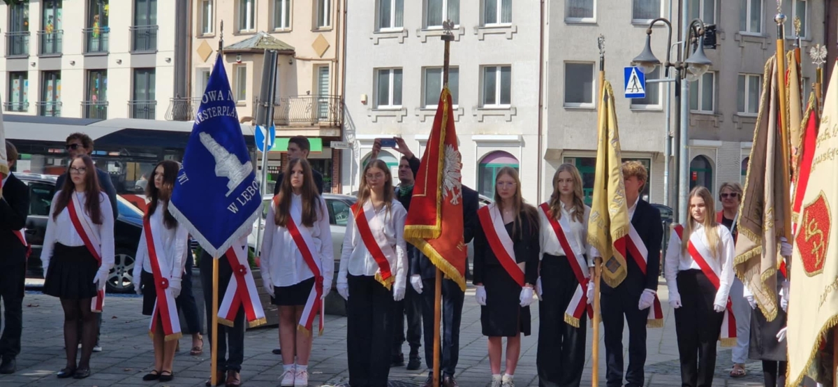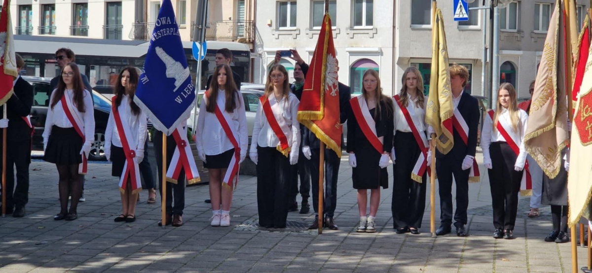 O godz. 12:00 poczet sztandarowy wraz z Panią Dyrektor i pedagogiem szkolnym Panią Anetą Okoń-Naczk udali się na uroczystości upamiętniające wybuch II Wojny Światowej.