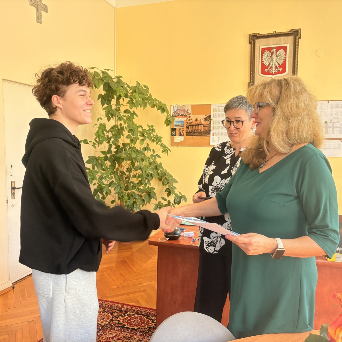 Tym razem uczyliśmy się nowych bardzo trudnych słówek z języka angielskiego, niemieckiego i hiszpańskiego. Zdobyliśmy gruntowną wiedzę na temat języków w UE, a chętni uczniowie walczyli o tytuł Mistrza Języka! Maciej Krasoń z klasy III CM to Mistrz Języka Angielskiego, Nina Scheucher - III C i Aleksandra Szulga z III B to Mistrzynie Języka Niemieckiego i Sergiusz Brzeziński z klasy IV D został Mistrzem Języka Hiszpańskiego. Wszyscy otrzymali nagrody ufundowane przez Radę Rodziców - bony upominkowe do księgarni Empik. Nagrody osobiście wręczyły: dyrektor szkoły dr Katarzyna Wach i przewodnicząca zespołu j.obcych Magdalena Sikora. Dziękujemy wszystkim uczniom i nauczycielom języka polskiego i języków obcych, a także pani pedagog za zaangażowane w organizację Europejskiego Dnia Języków