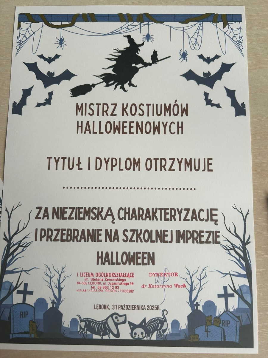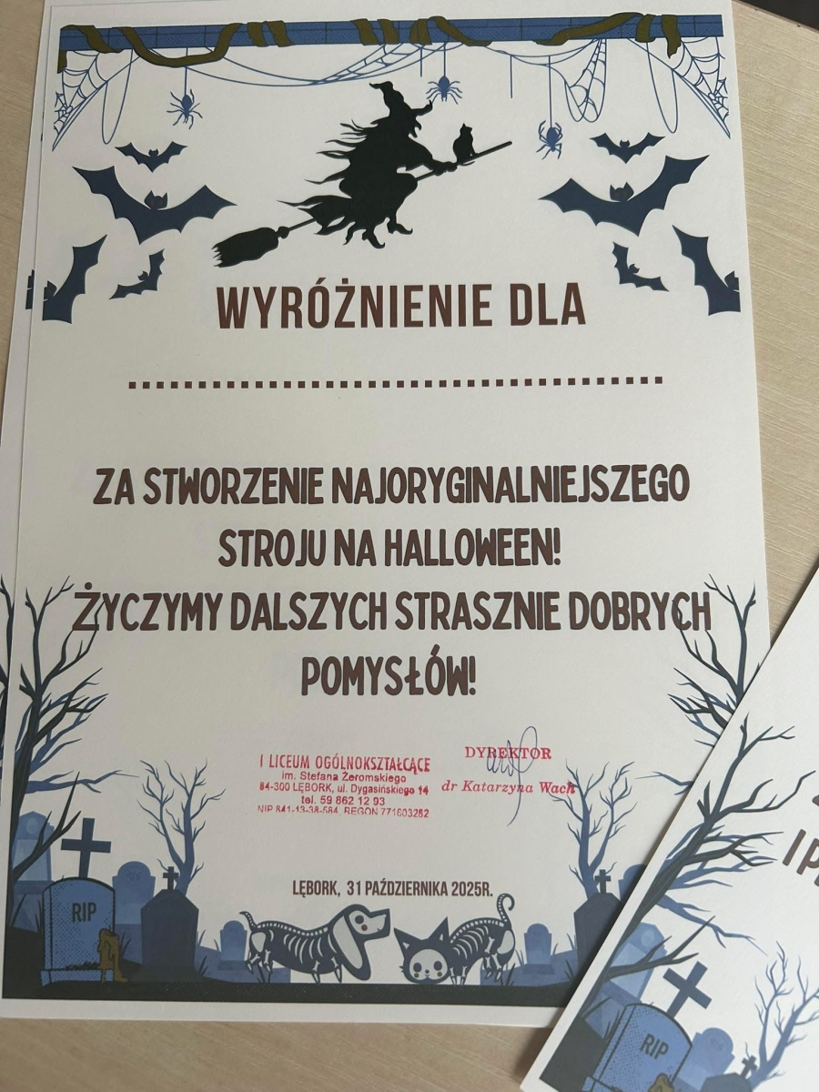 Samorządowi Uczniowskiemu dziękujemy za zorganizowanie fajnego dnia i za ufundowanie nagród a dziewczętom z kl 3D - Nikoli M i Laurze L za extra wystrój szkoły 👻