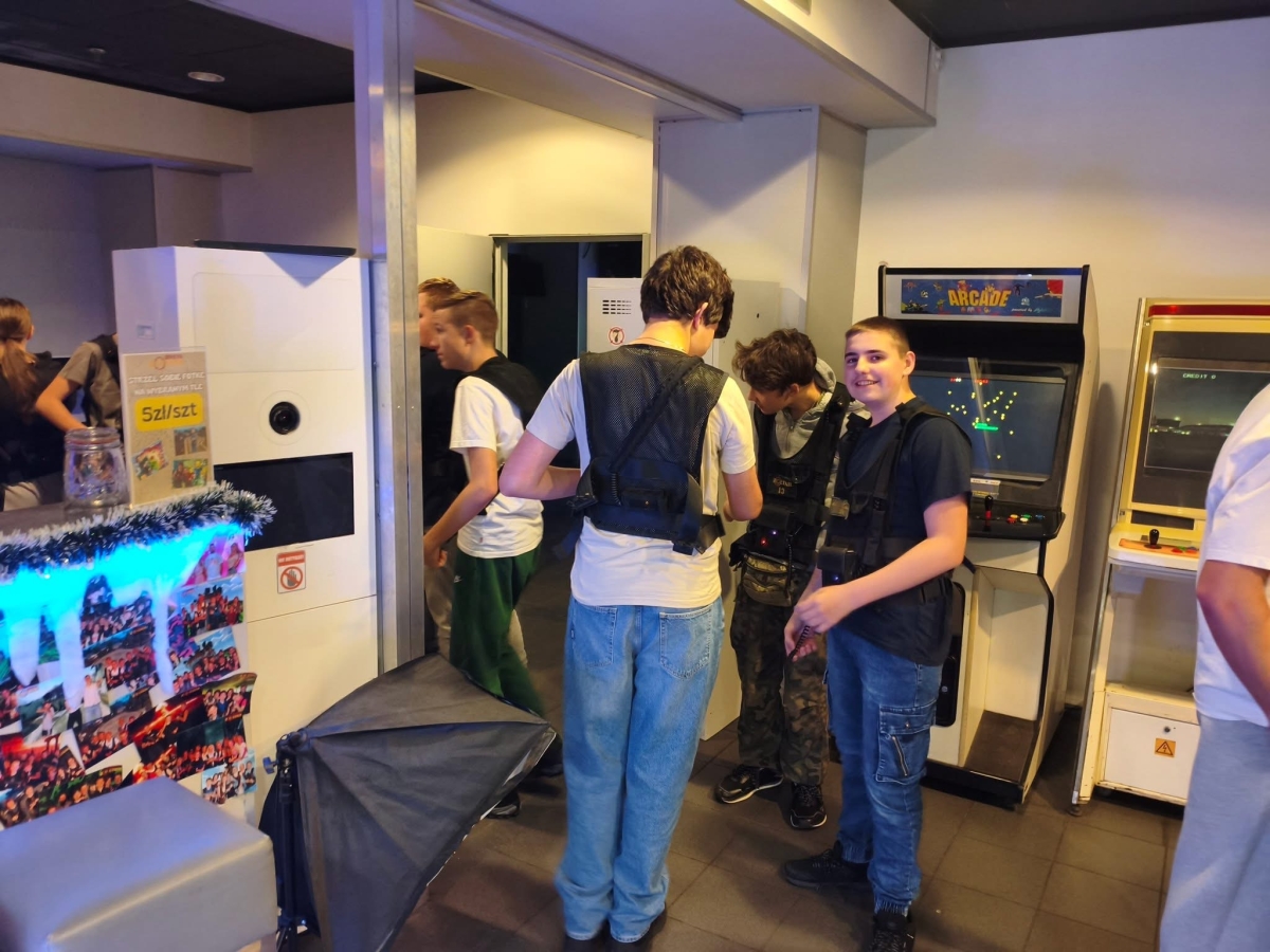Nasza młodzież - uczniowie klasy 1A, miała okazję sprawdzić swoje umiejętności taktyczne i celność w labiryncie laserowego paintballa.