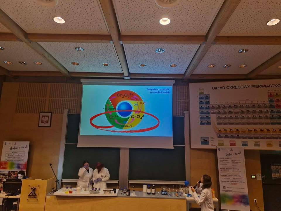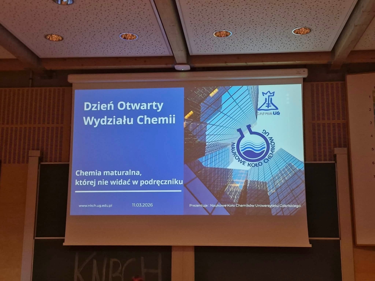 11.03.2026 uczniowie klas: 2B, 3B oraz 4B uczestniczyli w Dniach Otwartych Wydziału Chemicznego UG. Uczniowie mogli przez chwilę poczuć się studentami, biorąc aktywny udział w wykładach, pokazach doświadczeń chemicznych, czy warsztatach np.