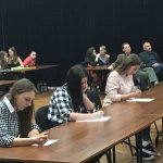 W tym roku nasza szkołę na zawodach powiatowych reprezentowały dwie uczennice, zwyciężczynie eliminacji miejskich: Weronika Wróblewska kl. IB i Nikola Wrąbel kl. IID.