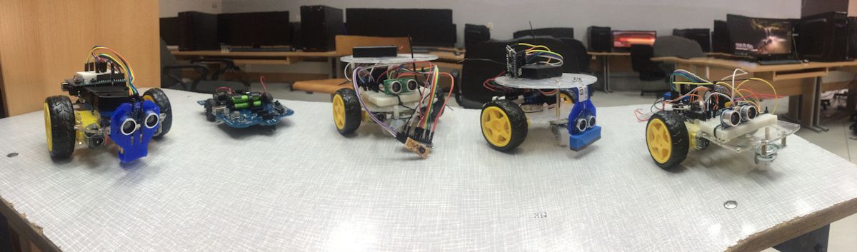 Samodzielne prace koła rozpoczęliśmy od wykorzystania gotowej konstrukcji Arduino Arex. Kolejne prototypy również budujemy na platformie Arduino, w oparciu o gotowe podwozia, dostępne w sklepach modelarskich. Aktualnie dysponujemy 5 urządzeniami umożliwiającymi realizację projektów typu: line follower, sumo lub robot zdalnie sterowany (IR).