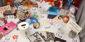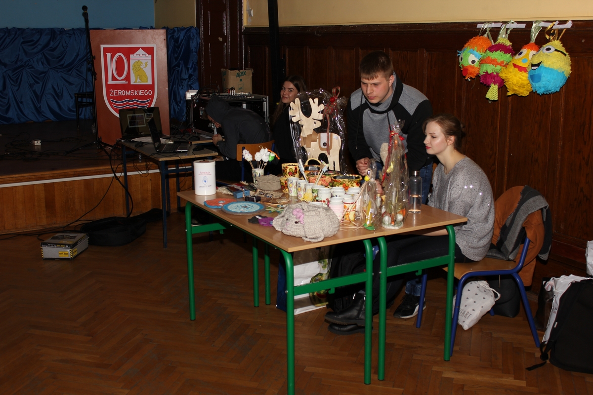 Każda z placówek oświatowych przygotowała na korytarzach naszej szkoły stoiska z własnymi wyrobami - czy to artystycznymi, czy też kulinarnymi, które można było zakupić i tym samym zasilić konto fundacji. Uczniowie I LO przygotowali dodatkowo tzw. "Pchli Targ" oraz „Loterię fantową”, na której można było wylosować atrakcyjne gadżety.