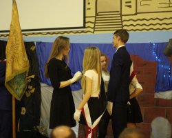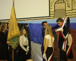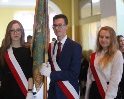 Dnia 16.11.2018 roku o godzinie 10.00 rozpoczęła się w naszej szkole podniosła uroczystość z okazji Święta Szkoły połączona z setną rocznicą odzyskania przez Polskę niepodległości. Zgromadziła wielu gości, m. in. Starostę Lęborskiego – Panią T. Ossowską-Szarą, burmistrza Miasta Lęborska- Pana W. Namyślaka, wizytatora Kuratorium Oświaty w Gdańsku – Panią. T. Lis, wiceprzewodniczącego Rady Rodziców – Pana A. Hoffmana, emerytowanych nauczycieli i pracowników szkoły, rodziców.