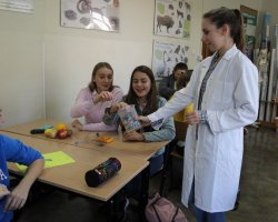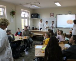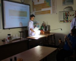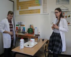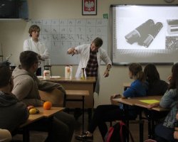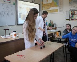 18 października br. projekt "Prąd z pomarańczy" zagościł w Społecznym Gimnazjum Językowym i Społecznej Językowej Szkole Podstawowej. Jak zwykle w części teoretycznej uczniowie mogli dowiedzieć się czym są reakcje redox. Natomiast doświadczenie przygotowane przez naszych licealistów pozwoliły zrozumieć ich przebieg. Przedstawiliśmy również jak samodzielne można zbudować baterię.