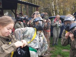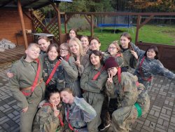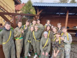 Jako początek wycieczki wyznaczyliśmy paintball. Na placu przeznaczonym do tej właśnie gry, wśród opon, domków i beczek, podzieleni na dwie grupy, rywalizowaliśmy ze sobą ciągle współpracując. Po wyczerpującej grze dotarliśmy na plac Pałacu Pod Bocianim Gniazdem, gdzie każdy z nas mógł spróbować swoich sił w spinaczce na ściance, czy grze w siatkówkę. Głodni i pełni wrażeń zasiedliśmy przy ognisku, zabierając się za jedzenie kiełbasek. Z uśmiechami na twarzach zatańczyliśmy belgijkę, a na sam koniec wzięliśmy udział w grupowej grze: mafii, która ukazała naszą pełną zapału i chęci współpracę.