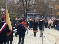 W imieniu społeczności szkolnej kwiaty pod Obeliskiem złożyła, wraz z innymi dyrektorami szkół ponadpodstawowych, dyrektor I Liceum Ogólnokształcącego w Lęborku - Katarzyna Wach.