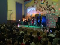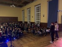 Wieczór otworzyła Pani Dyrektor Katarzyna Wach oraz szkolna grupa teatralna pod kierunkiem Pań polonistek - Katarzyny Harackiewicz i Magdaleny Gałki. Młodzież przeniosła nas w lata 20-ste. Po krótkim mini musicalu głos zabrała Przewodnicząca SU - Daria Marcisz z klasy II D.