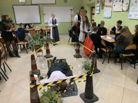 Szczególnie chylę też czoło naszej Pani Pedagog - Anecie Okoń, która wraz z prężną grupą młodzieży zadbała o wystrój szkoły, jak zwykle dekoracja zapierała dech. Rzeczywiście wszyscy przenieśliśmy się w czasy Sherlocka Holmesa. Jeszcze raz DZIĘKUJĘ.