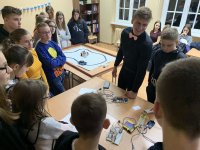 Po występach w auli szkoły ósmoklasiści zostali podzieleni na 14 grup, przydzielono im opiekunów i z zapałem ruszyli na "wędrówkę" po klasach, w których nasi licealiści wraz z nauczycielami przygotowali mnóstwo atrakcji naukowych. Uczniowie mieli możliwość rozwiązania zagadki biologicznej - " Kto to zrobił?", zbierali i badali dowody, przeprowadzali śledztwo, zatrzymali winnego, zgłębili także tajniki pracowitych nerek, tropili ciekawą chemię, rozwiązywali zagadki matematyczne prosto z Baker Street , z języka angielskiego rozwiązywali zagadki w formie kodów QR, z niemieckiego odkrywali ciekawostki językoznawcze i kulturoznawcze , z hiszpańskiego poznali moc głuchego telefonu - El telefono escacharrado, z fizyki przeprowadzali ciekawe doświadczenia,z informatyki poznali tajniki drukarki 3D oraz odkryli czym jest BLENINO, z geografii udali się w podróż w 80 dni z Juliuszem Verne. Gabinet historyczny przeniósł nas w czasy PRL-u, można było dokonać zakupów w słynnym sklepie PEWEX, posłuchać hitów lat 80-tych z prawdziwego adepteru. Po ciężkich dla umysłu zagadkach uczniowie mogli wziąć udział w castingu do Teatru Żeromskiego, który poszukiwał zarówno świetnego detektywa jak i aktora - zabawa była naprawdę świetna.