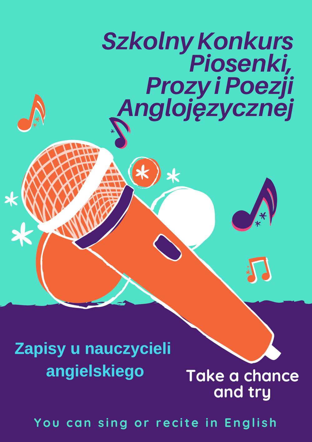 Serdecznie zapraszamy do wzięcia udziału w Szkolnym Konkursie Piosenki, Prozy i Poezji Anglojęzycznej.
