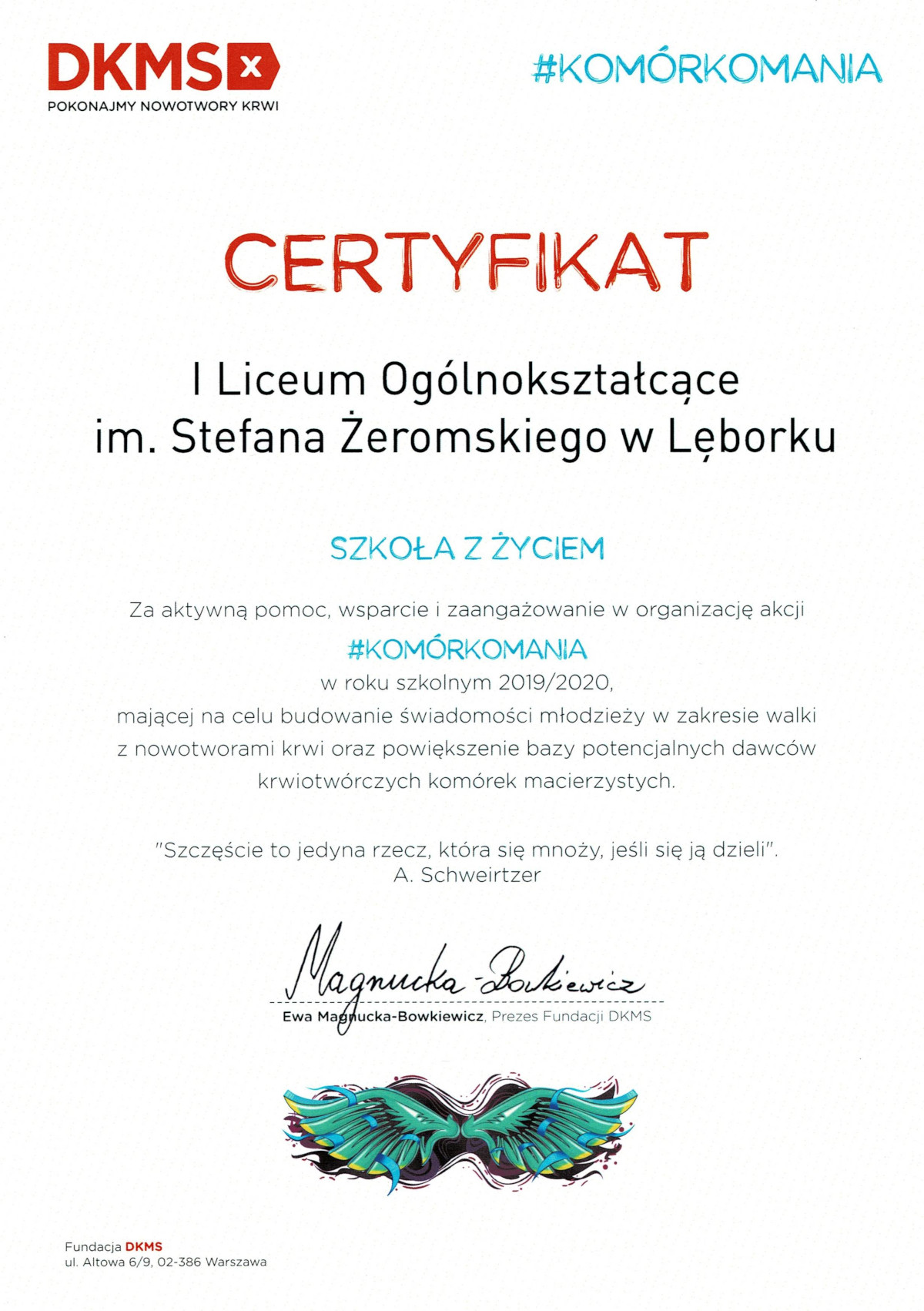 Certyfikat DKMS dla ILO