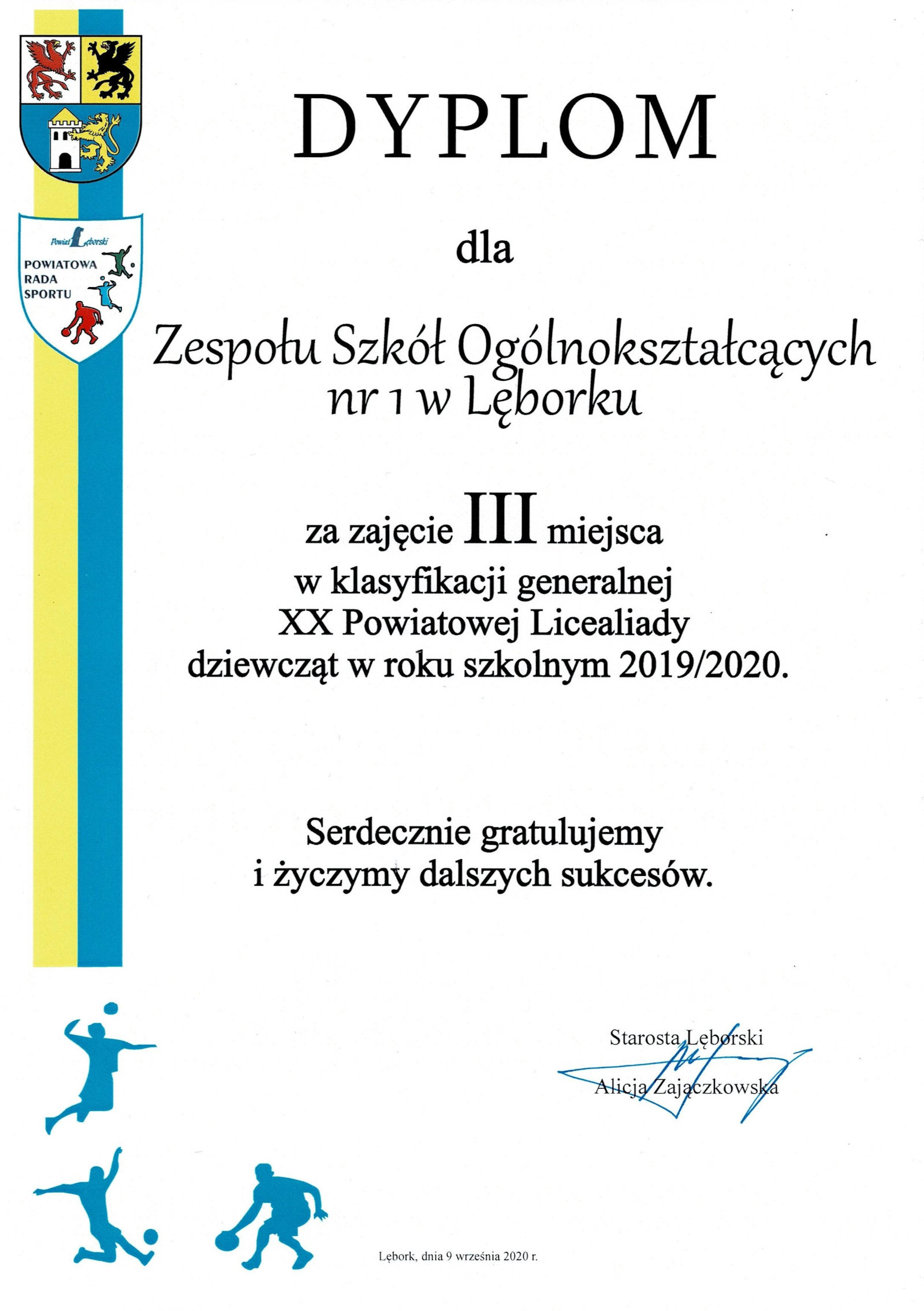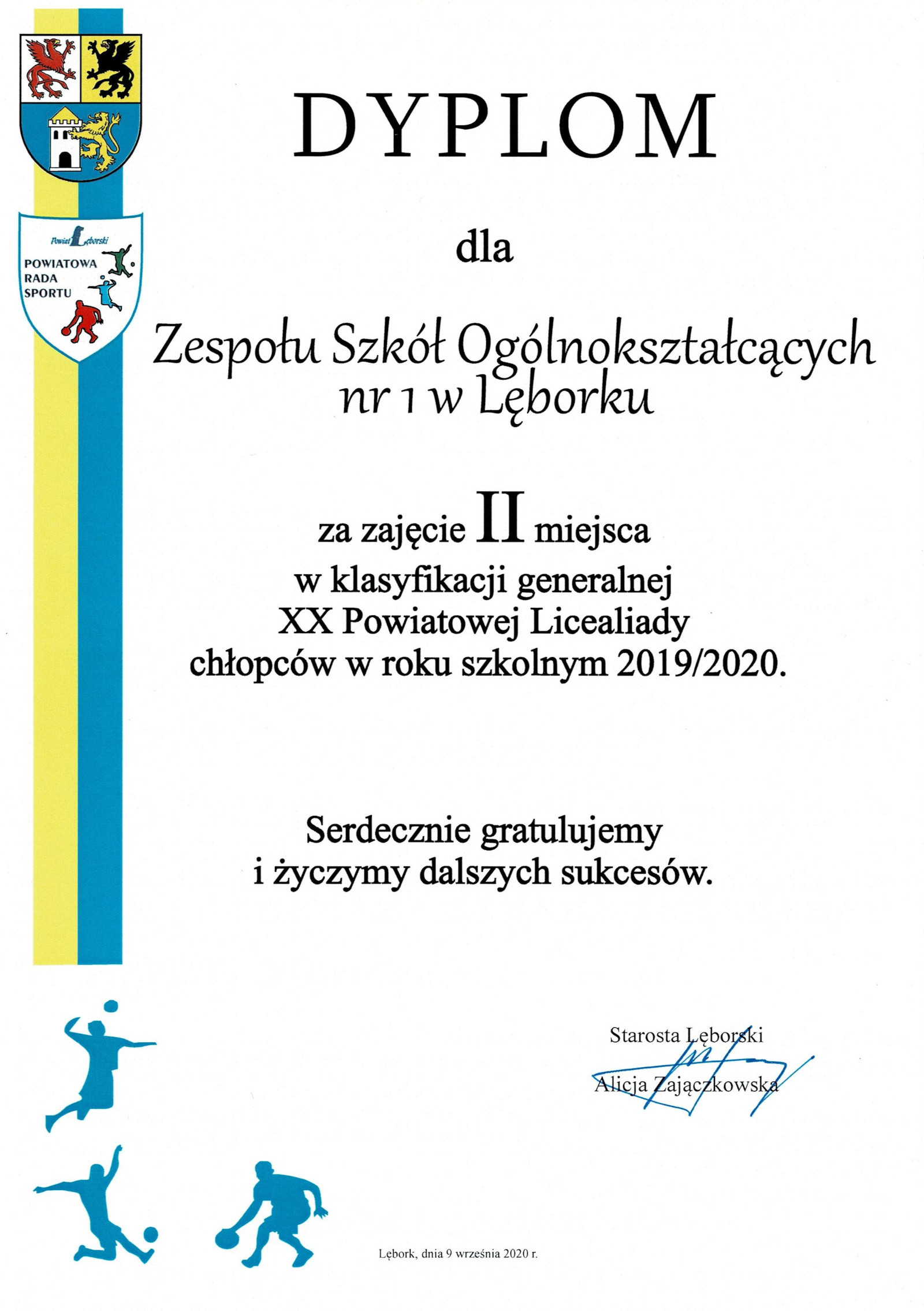 9 września br. w Starostwie Powiatowym w Lęborku odbyło się podsumowanie współzawodnictwa sportowego szkół podstawowych i ponadpodstawowych w ramach Igrzysk Dzieci, Igrzysk Młodzieży Szkolnej oraz Licealiady w roku szkolnym 2019/2020. Dyrektorom szkół, sportowych osiągnięć ich wychowanków gratulowali: Alicja Zajączkowska – Starosta Lęborski, Jacek Perłak – Członek Zarządu Powiatu Lęborskiego, Marian Borek – Przewodniczący Powiatowej Rady Sportu i Maciej Barański – Radny Powiatu Lęborskiego. Ze względu na bezpieczeństwo epidemiczne dzieci i młodzieży, tegoroczne podsumowanie sportowych sukcesów odbyło się w gronie dyrektorów placówek oświatowych.