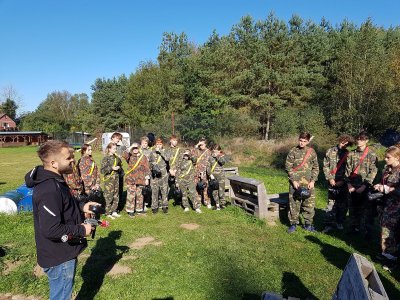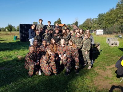 Nic tak nie zbliża młodych ludzi, jak wspólna gra w drużynie! Przekonali się o tym uczniowie klasy językowej, którzy spędzili upalny poniedziałek (23.09) na rozgrywkach paintbalowych na Poligonie Delta w Potęgowie.