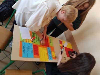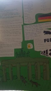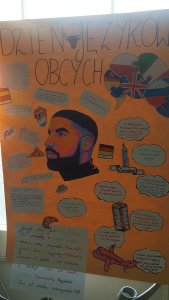 Efekty pracy uczniów zostały zaprezentowane w tzw "galerii" , powstałej na potrzeby Dnia Języków Obcych.