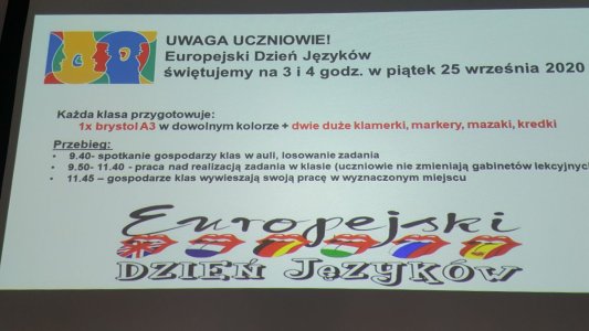 25.09.2020 obchodziliśmy w naszej szkole Dzień Języków Obcych. Zespół językowy przygotował dla każdej z klas zadania, które realizowane były przez młodzież na dwóch godzinach lekcyjnych i poświęcone były następującym państwom: Anglia, Niemcy, Hiszpania, Rosja.