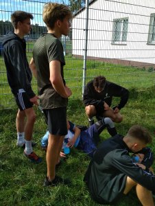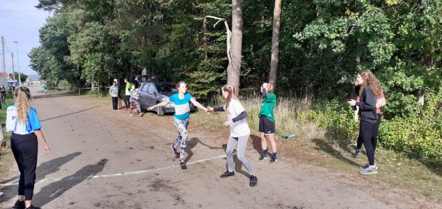 We wtorek 6 października w lasku przy stadionie miejskim w Lęborku w ramach Powiatowej Licealiady odbyły się zawody w sztafetowych biegach przełajowych  dziewcząt i chłopców szkół ponadpodstawowych. W rywalizacji wzięły udział wszystkie szkoły ponadpodstawowe powiatu lęborskiego. Po bardzo pasjonującej walce na trasie nasze dziewczęta wywalczyły srebro ze stratą kilku sekund do zwycięskiej reprezentacji PCE. Drużyna chłopców naszej szkoły do przedostatniej zmiany zajmowała 2 pozycję z minimalną stratą do ekipy z PCE. Ostatecznie zajęli 3 miejsce na podium. Gratulujemy.