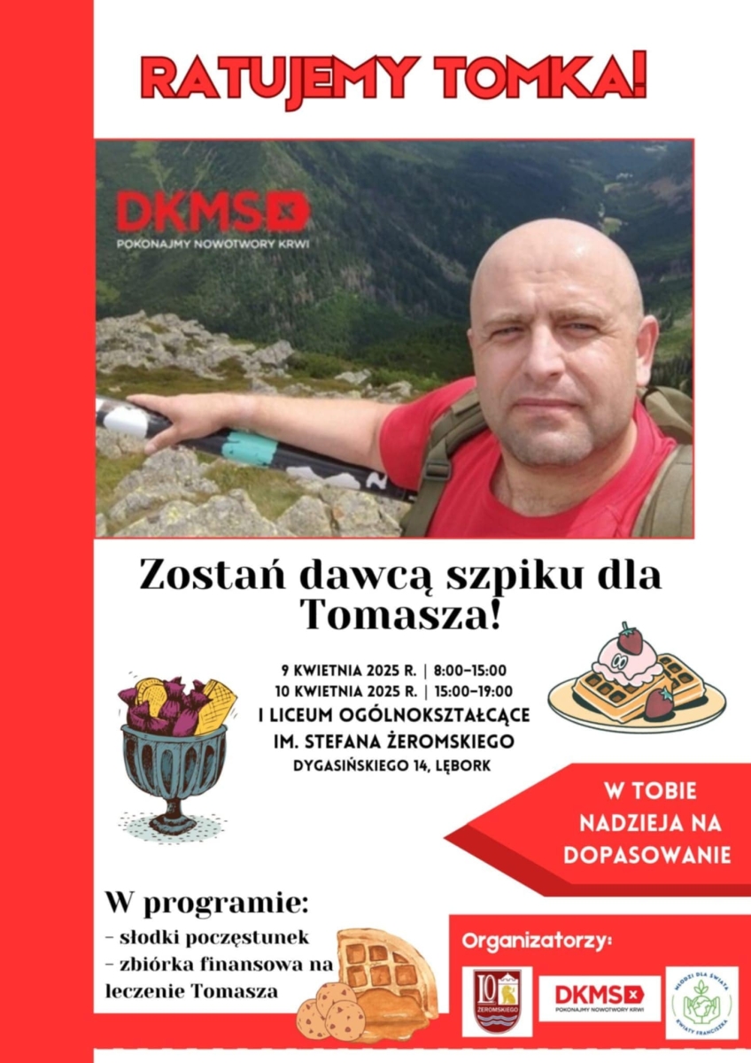 serdecznie zapraszamy Państwa do naszego Liceum , dnia 10.04 - czwartek do przyłączenia się do akcji Zostań dawcą Szpiku.