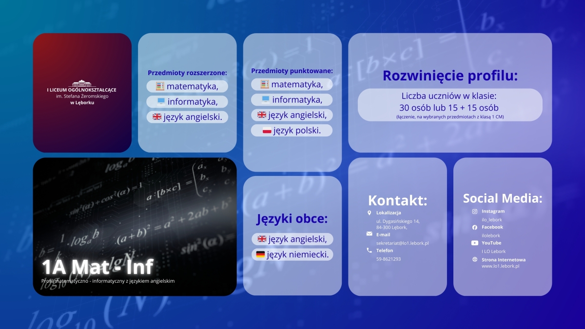 Prezentujemy Wam jeden z naszych profili na Rok Szkolny 2026/2027, jest to profil MAT-INF 🧮👨💻 z rozszerzonym językiem angielskim,