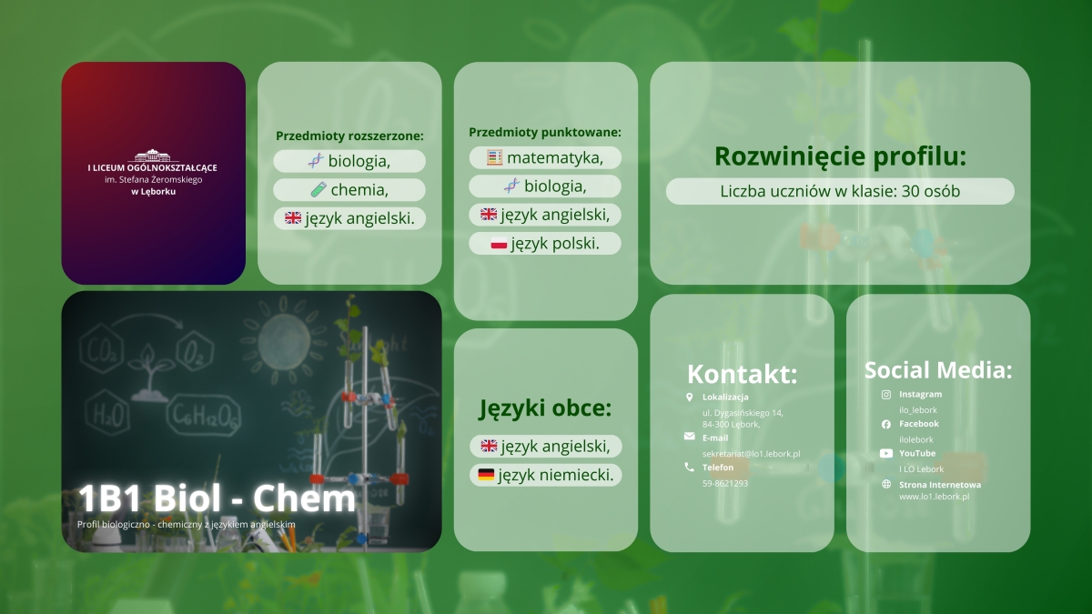 Prezentujemy Wam następny z naszych profili na Rok Szkolny 2026/2027, jest to profil BIOL-CHEM 🧬🧑🔬 z rozszerzonym językiem angielskim, biologią oraz chemią.