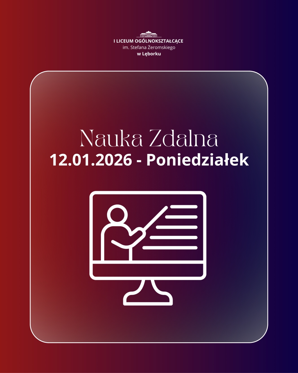 w związku z trudnymi warunkami pogodowymi, ostrzeżeniami IMGW dotyczącymi intensywnych opadów śniegu, zawiei i niskich temperatur oraz utrudnieniami w przejezdności dróg lokalnych i powiatowych w rejonie Lęborka, w trosce o bezpieczeństwo uczniów i pracowników szkoły, w dniu 12 stycznia 2026 r. w Zespole Szkół Ogólnokształcących nr 1 w Lęborku zostaje wprowadzona nauka zdalna.