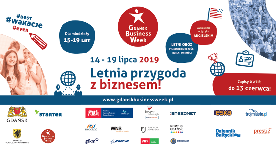 Trwa nabór do Gdańsk Business Week, letniego obozu przedsiębiorczości i kreatywności dla nastolatków w wieku 15-19 lat. Zajęcia prowadzą mentorzy z USA, Polski i innych krajów a wszystkie zajecia odbywają się całkowicie w języku angielskim. Młodzież podczas 6 dni wciągających zajęć będzie pracować nad rozwojem własnej firmy a wytworzony produkt ostatniego dnia zajęć będzie musiała zaprezentować inwestorom z biznesu. To potężna dawka wiedzy, umiejętności, dobrej zabawy i wiary we własne siły!