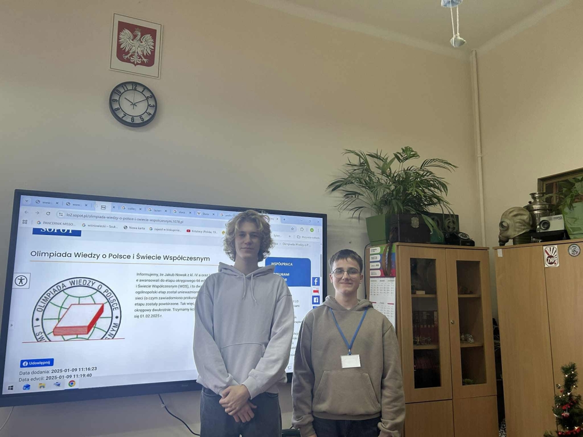 Z przyjemnością informujemy o sukcesie naszych uczniów. Agata G z klasy 3B i Nikodem M z klasy 3A, reprezentowali nasze liceum podczas prestiżowych zmagań w etapie okręgowym Olimpiady Wiedzy Technicznej – Inżynierii w Elektroenergetyce w Gdańsku dnia 07.01.2026.