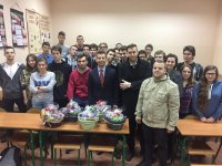 W tym roku po raz kolejny uczniowie klasy IIIA wraz z wychowawcą Tomaszem Tutakiem przygotowali paczki dla potrzebujących wsparcia dzieci z zaprzyjaźnionego sołectwa Obliwice. W dniu dzisiejszym gościł w naszej Szkole sołtys Obliwic - Paweł Kubiak i prezes stowarzyszenia "Obliwice i okolice" - Bartłomiej Zambrzycki. Przygotowane paczki zostaną przekazane dzieciom na zabawie świątecznej w najbliższy weekend.
