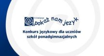 Serdecznie zapraszamy do udziału w XVI edycji konkursu "Pokaż nam język". W tym roku jego temat przewodni brzmi: "Bliżej czy dalej od siebie? - rola wirtualnego świata w komunikacji międzyludzkiej". Językowe zmagania obejmą języki: angielski i niemiecki. Organizatorem konkursu są Wyższe Szkoły Bankowe. Rejestracja uczniów i rozwiązywanie testów internetowych potrwa od 8 do 16 marca br. (I etap)