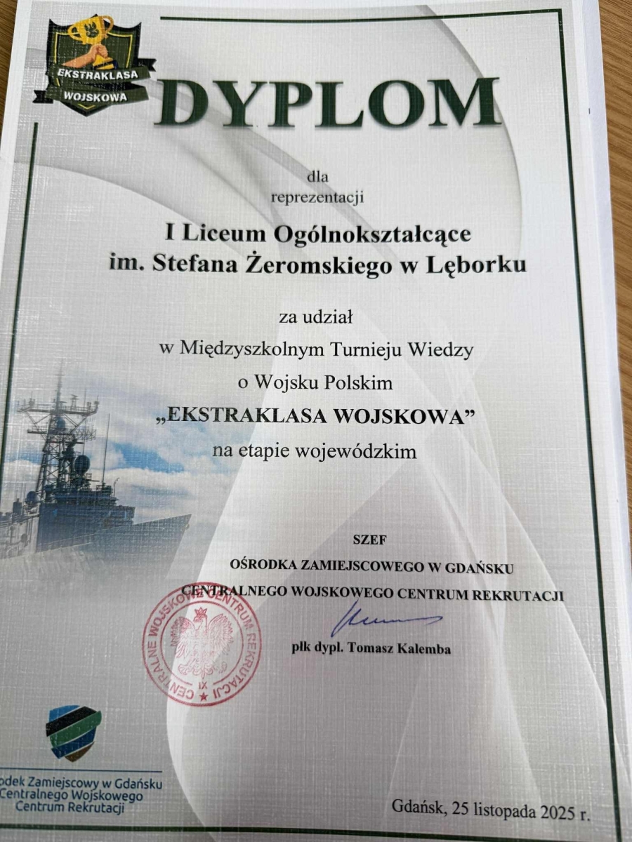 25.11.2025r. uczniowie klasy III CM - Dorian, Filip i Paweł wzięli udział w Międzyszkolnym Turnieju Wiedzy o Wojsku Polskim Ekstraklasa Wojskowa na etapie wojewódzkim!
