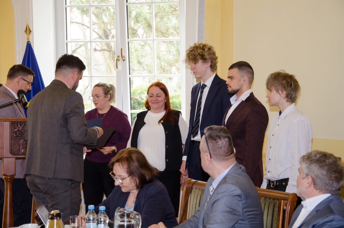 Dzisiaj (24.03), podczas 18. sesji Rady Powiatu Lęborskiego młodzi znawcy samorządowych zagadnień 📚 zostali wyróżnieni przez Starostę Lęborskiego Tomasza Litwina i przewodniczącego Rady Powiatu Mirosława Tandka.