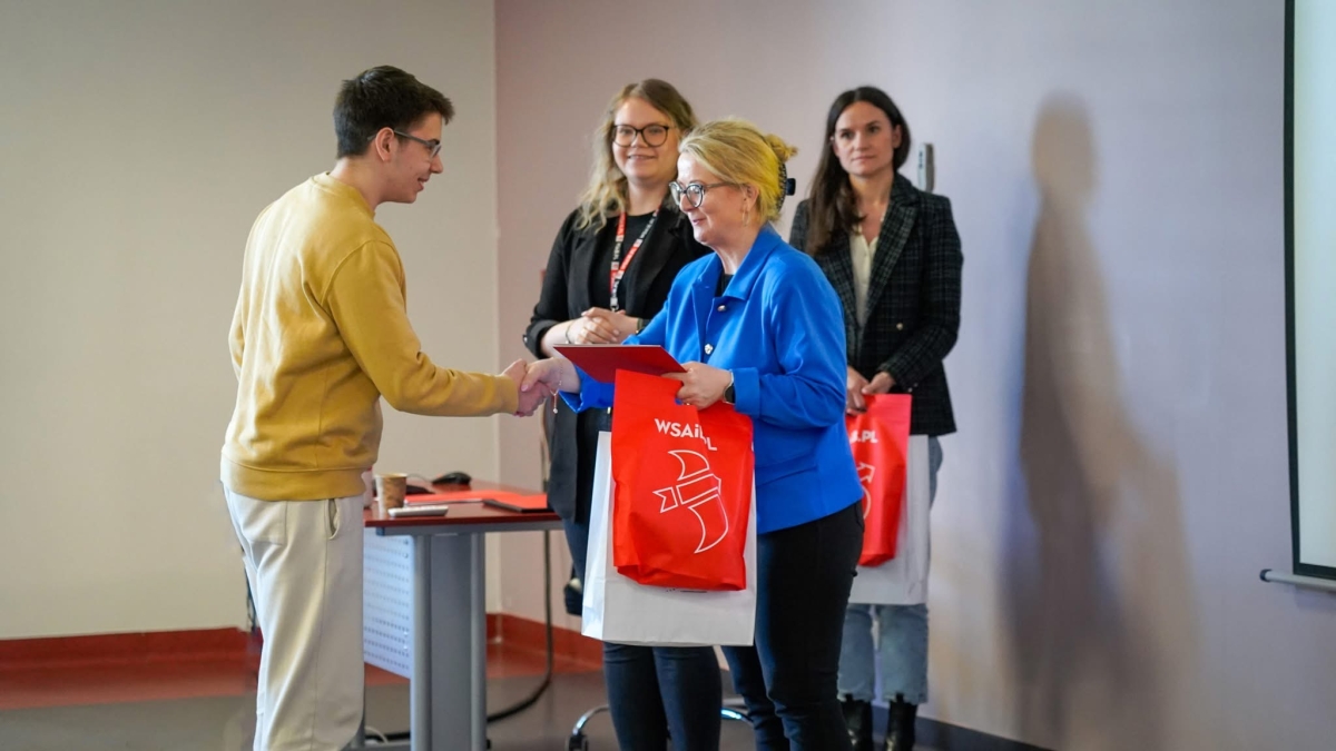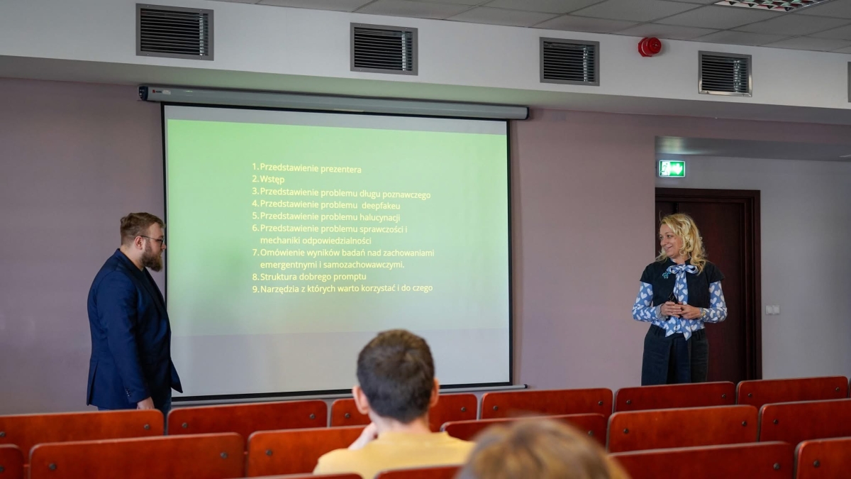 🔴 W oczekiwaniu na ogłoszenie wyników przez jury uczestnicy wysłuchali wykładu absolwenta WSAiB mgra Piotra Kornackiego nt. m.in. sztucznej inteligencji.