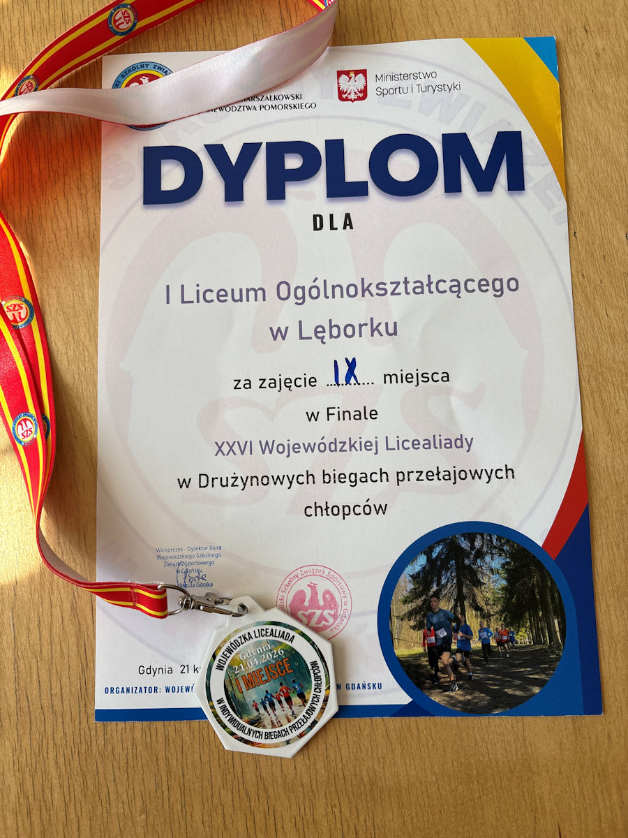 Reprezentacja I Liceum Ogólnokształcącego w Lęborku godnie zaprezentowała się w gronie najlepszych drużyn w regionie. Największy sukces indywidualny odniósł Błażej Frączak, który w znakomitym stylu zwyciężył cały bieg, zajmując 1. miejsce 🥇👏💪 To ogromne osiągnięcie i dowód świetnego przygotowania oraz determinacji.