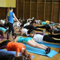 W szkolnym Maratonie Fitness wzięło udział 85 uczniów. Na początku imprezy uczestnicy spotkali się z dietetykiem i wysłuchali wykładu na temat zdrowego żywienia nastoletniego sportowca, a następnie przystąpili do ćwiczeń. Najpierw latynoskie rytmy, czyli fuzja tańca i aerobiku, a następnie trening obwodowy i stretching. Poniżej fotorelacja.