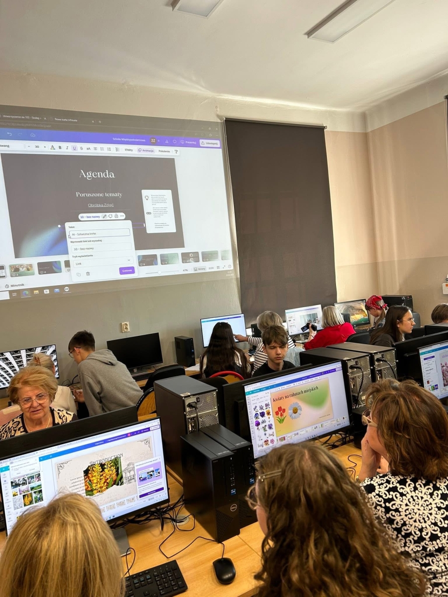 Warsztaty poprowadzone przez naszą młodzież z klas 2CM i 3A dotyczyły tym razem Prezentacji Multimedialnych oraz wykazanie własnej inwencji twórczej. Każdy Senior tworzył prezentację na wybrany przez siebie temat wykazując w ten sposób swoją twórczość, w której wsparciem była młodzież. Lekcja była bardzo ożywiona wspólną współpracą, która dała niesamowite efekty!